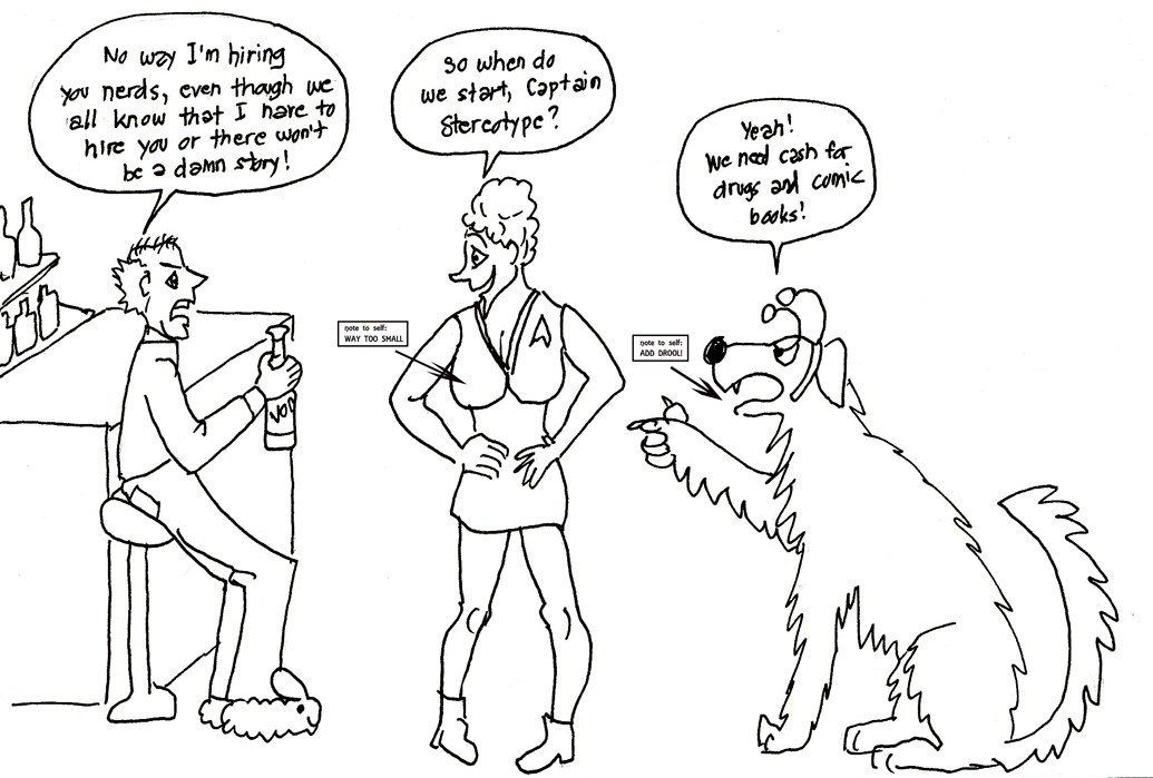 I begin by presenting a totally unbiased review of that rat Matilda’s first novel: “Death Walks into a Bar.” I almost liked the book on first reading. At least the parts where I could stay awake. But one major thing was missing — pictures! And who is better at drawing than me? So I approached Matilda with the idea that I turn her book into a graphic novel. I even produced some panels on spec to strut my stuff, with lovely artwork and much-improved dialogue. But don’t just take my word for it. Check out this beauty: