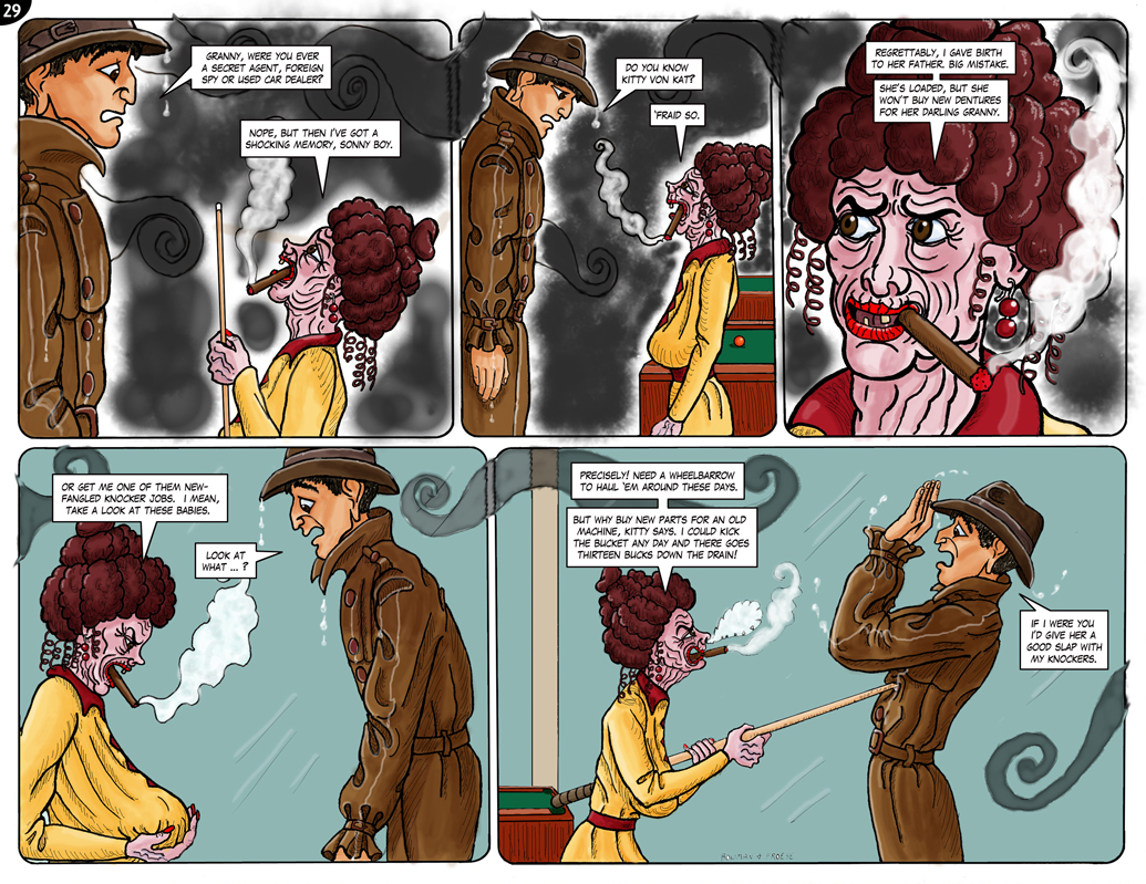 Category: Ben Frost: Detective?, The Quasi-Kidnapping of Kitty Von Kat Tagged: 1930s, Ben Frost, Granny Katzinski, Vancouver, webcomic