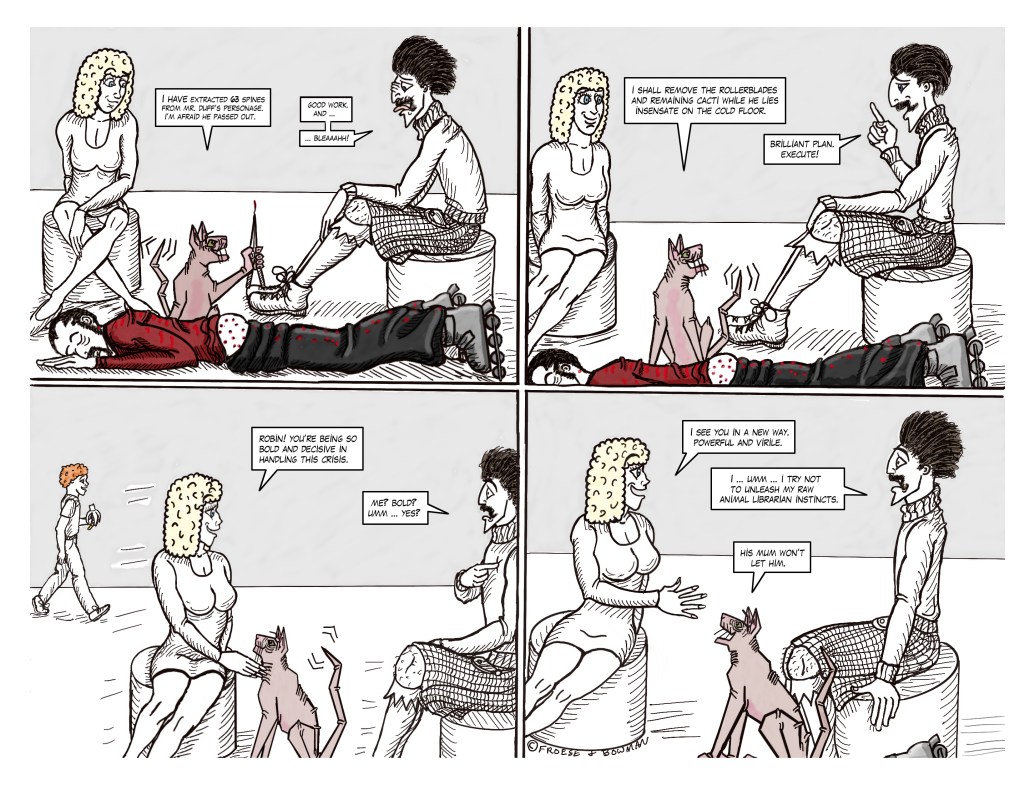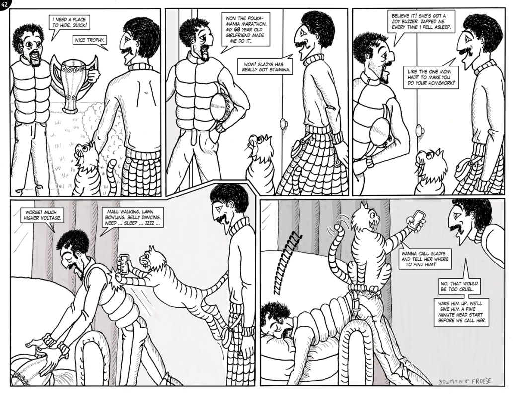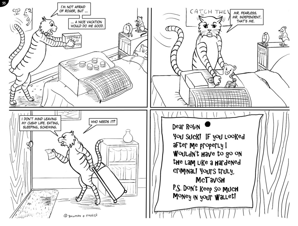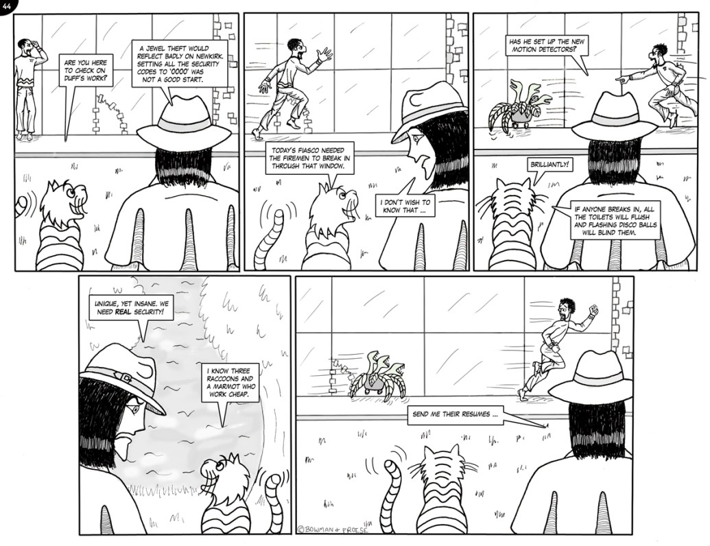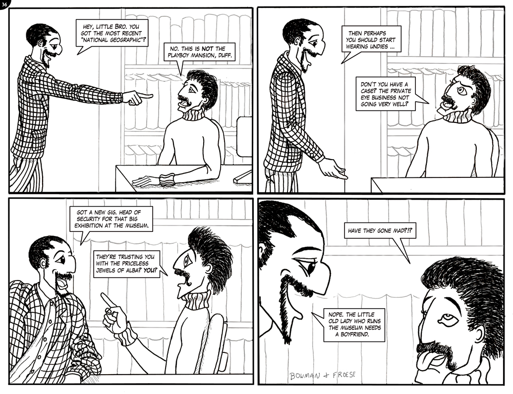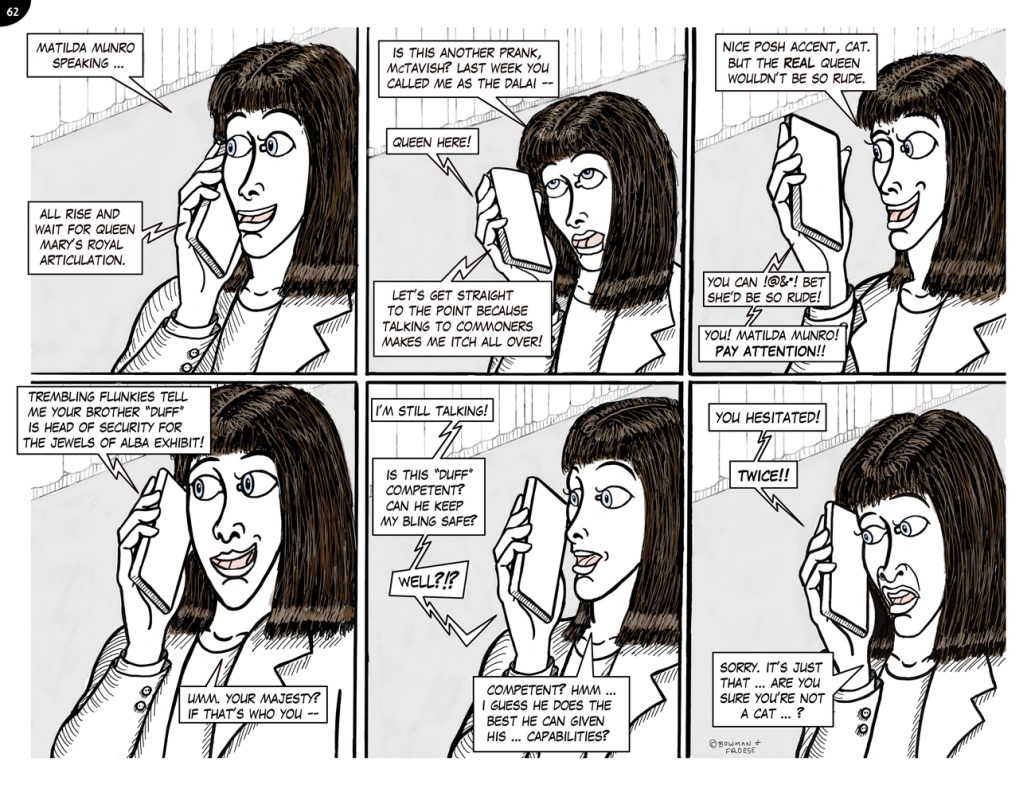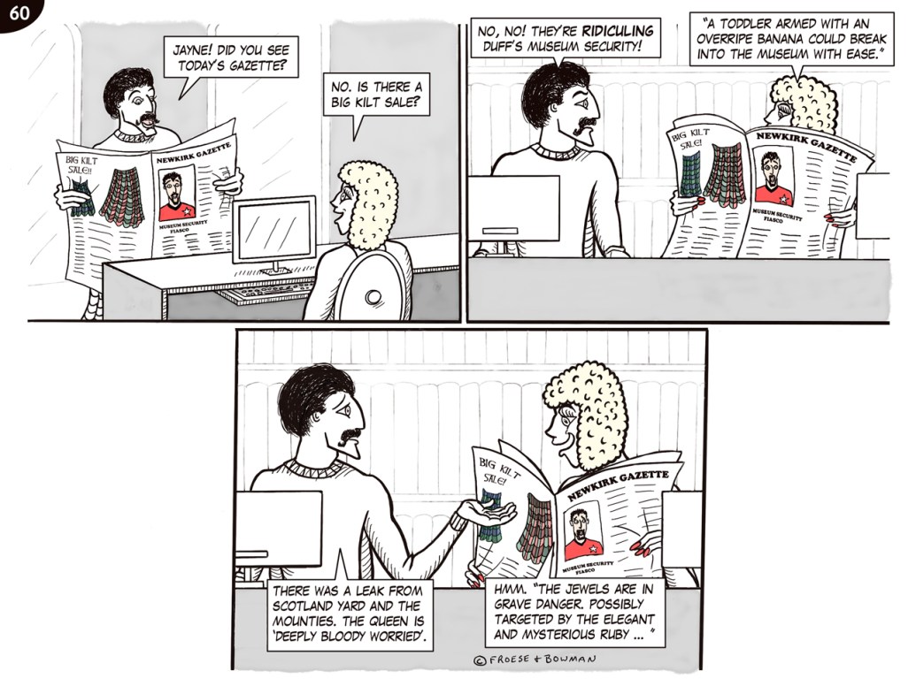 51. A LITTLE PARANOID, PERHAPS?52. A CLEVER DISGUISE …53. THE FUZZ54. ROGER vs McTAVISH55. ON THE LAM …56. POOR KITTY!57. INNOVATIVE DUFF58. SHORT ORDER CHAOS 159. SHORT ORDER CHAOS 260. SECURITY LEAK?61. NO SECURITY LEAK HERE …62. THE QUEEN … OR NOT THE QUEEN? pt 163. THE QUEEN … OR NOT THE QUEEN? pt 264. TOP SECRET 165. TOP SECRET 266. DISTRESSINGLY ENCRUSTED67. Komedy Klub Part 168. Komedy Klub Part 269. McTavish Who?70. The new butler71. Interrogation!72. Maniacal Moms Part 173. Maniacal Moms Part 274. Maniacal Moms Part 375. Innovative security arrangements!76. 63 spines!77. The McTavish Symphony Orchestra78. Museum under attack? 179. Museum under attack? 280. McTavish returns