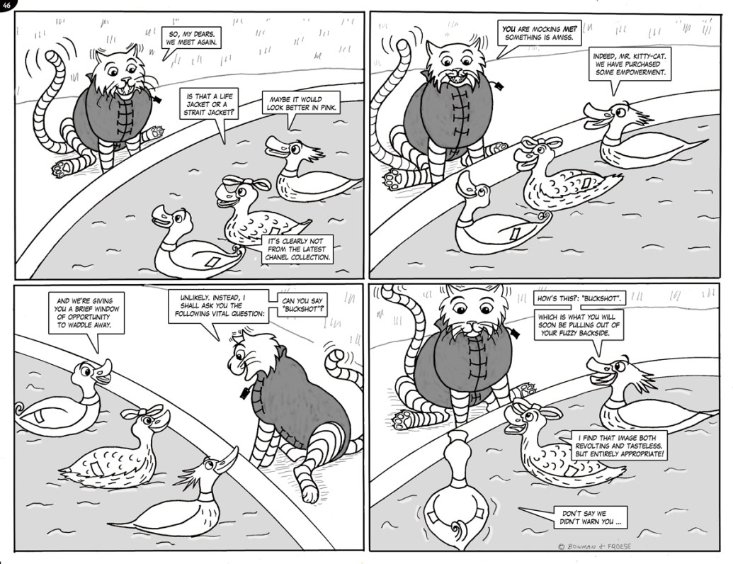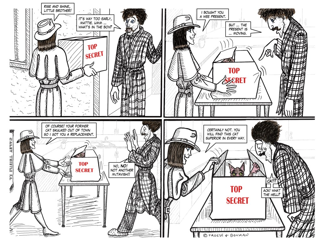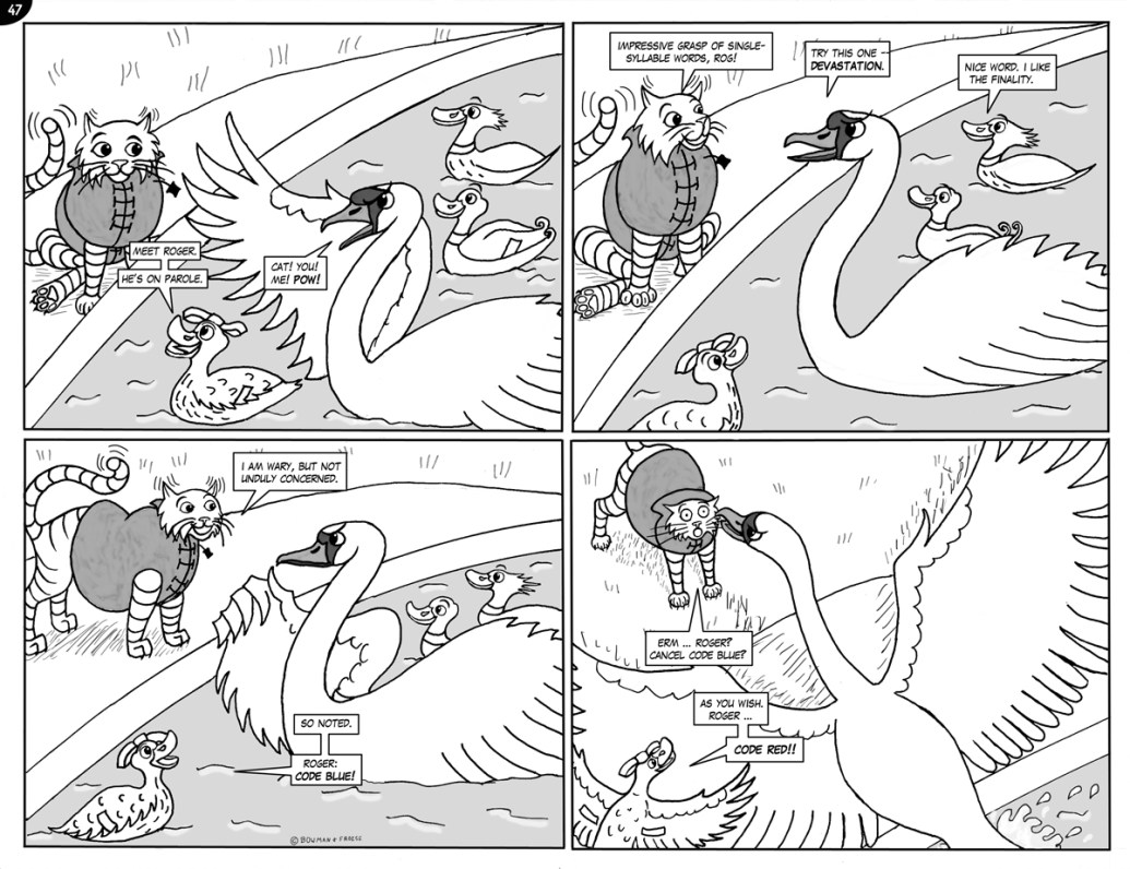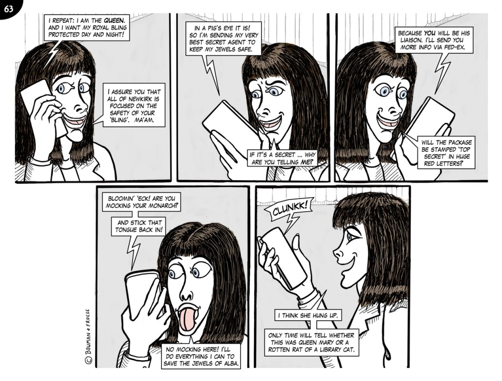 36. DUFF AND THE JEWELS37. THE FORTHCOMING CHAOS ARRIVES EARLY38. 9-1-1, ANYONE … ?39. JAYNE vs McTAVISH …40, … AND JAYNE WINS41. HEAVY RHYMING?42. NEED … SLEEP …44. SECURITY INSECURITY45. THE PROPERTY OF BLOODY QUEEN MARY46. SOMETHING IS AMISS47. NOTHING TO WORRY ABOUT48. FWOOOOOSH!49. EEEYYOWWW!50. CATFISH?